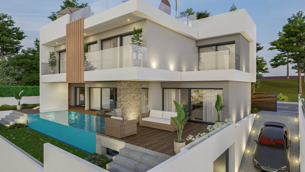 The villa features a contemporary design, with spacious interiors bathed in natural light. Elegant living areas, a modern gourmet kitchen, and spacious bedrooms to ensure comfort and style. The master suite includes a luxurious en-suite bathroom and private terrace with stunning views.. Outside, the beautiful garden with an infinity pool is perfect for relaxation and entertaining.